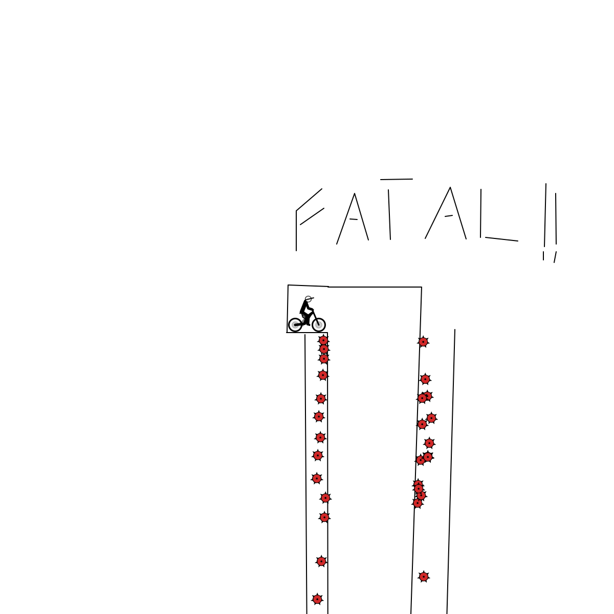 Fall to the bottom of the pit and touch the tip of the spike to win!
